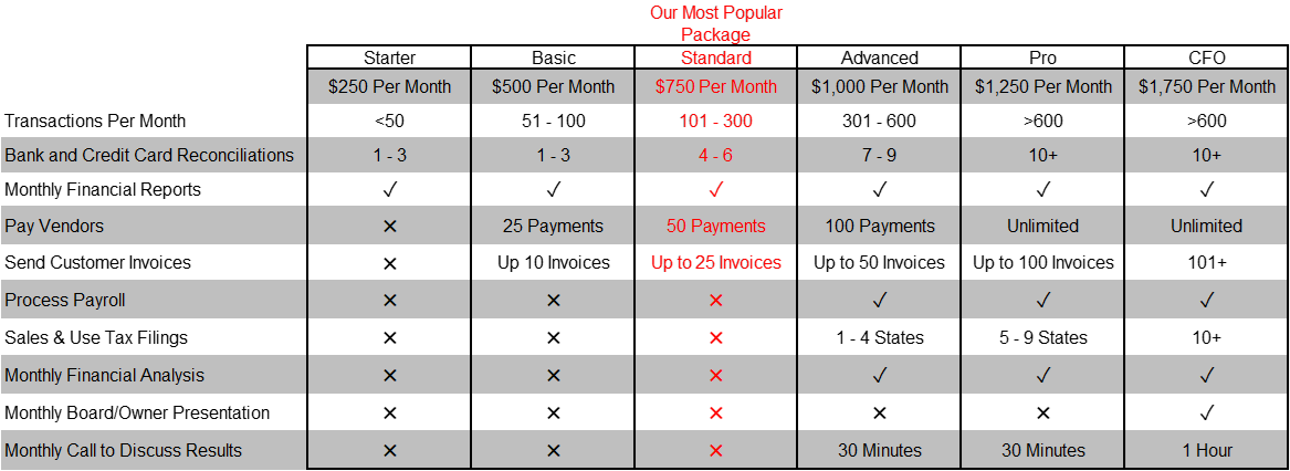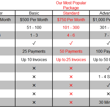 ***Packages can be customized by adding excluded services a la carte. Prices range from $100 - $250 each depending on the service. Contact us for quote on pricing for services not listed.